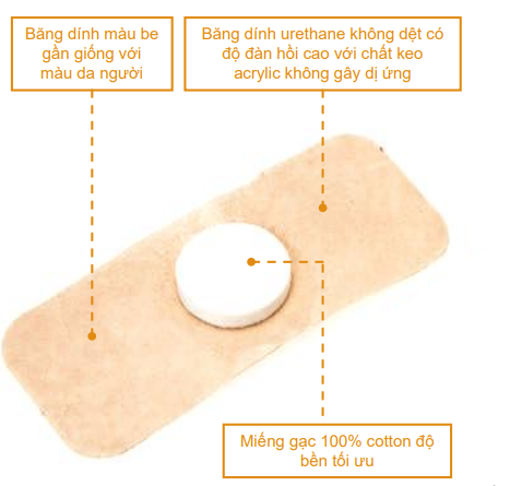 - Băng dính có độ đàn hồi cao, có thể điều chỉnh áp lực đối với việc cầm máu và không gây dị ứng.