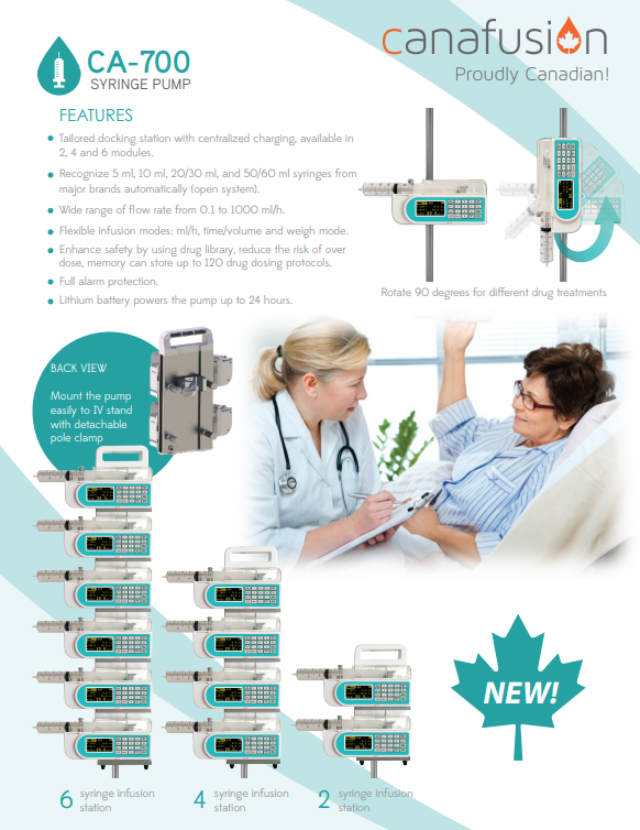 Bơm tiêm điện cỡ nhỏ CA-700 giúp cho Y Bác Sĩ thực hiện liệu pháp truyền dung dịch vào cơ thể bệnh nhân để đạt mục tiêu y khoa.