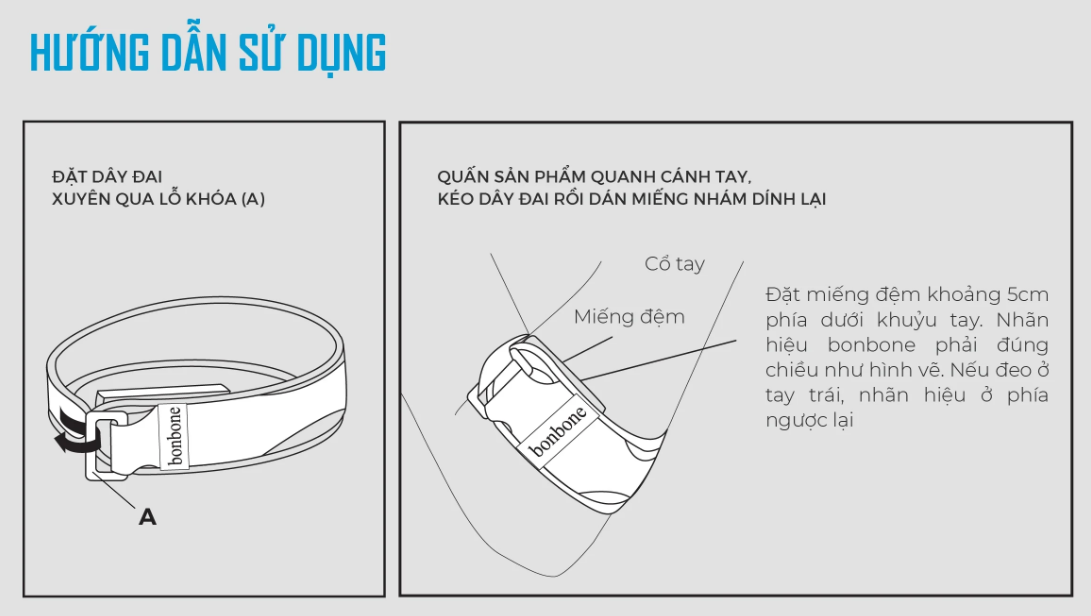 - Dễ dàng điều chỉnh lực bó lên vùng cánh tay bằng cách siết chặt hoặc nới lỏng dây.