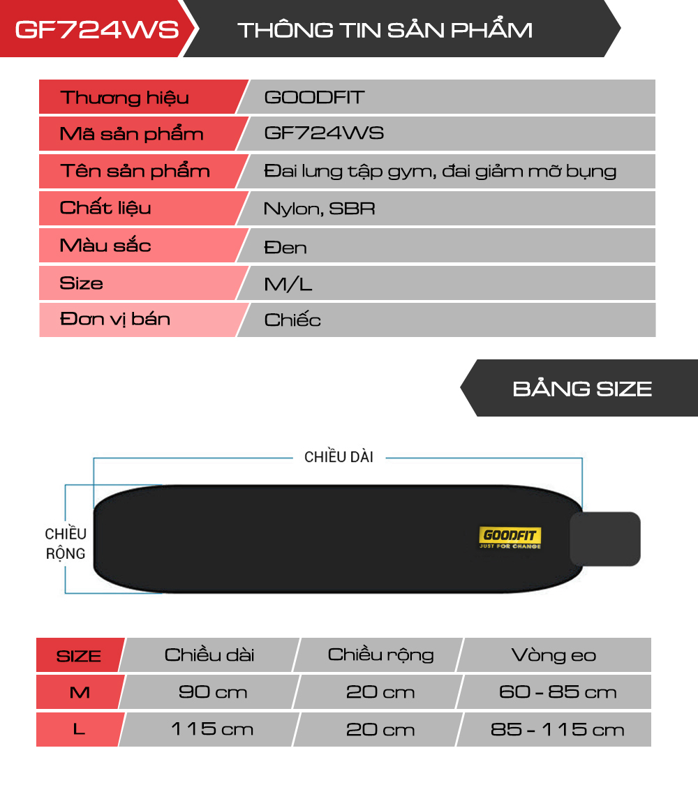 Đai lưng tập gym, đai giảm mỡ bụng GF724WS