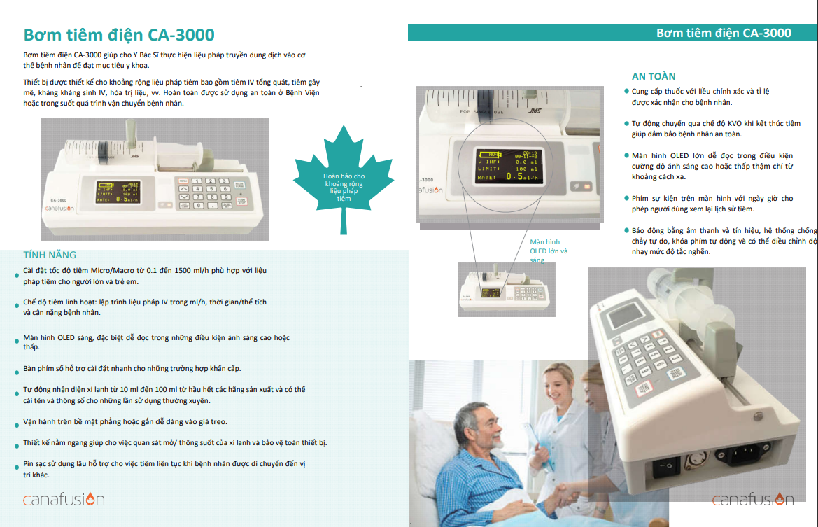 Bơm tiêm điện CA-3000 giúp cho Y Bác Sĩ thực hiện liệu pháp truyền dung dịch vào cơ thể bệnh nhân để đạt mục tiêu y khoa.