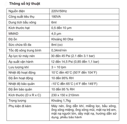 Máy có tác dụng hỗ trợ điều trị các bệnh về đường hô hấp như viêm thanh quản, viêm mũi họng, viêm khí – phế quản, viêm xoang... cho người bệnh cảm thấy dễ chịu hơn, hô hấp tốt hơn.