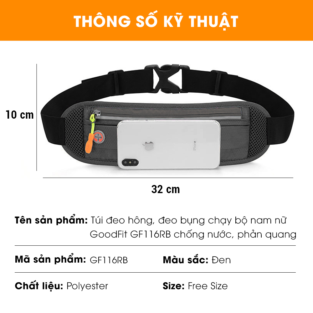 Túi đeo hông, đeo bụng chạy bộ GF116RB chống nước, phản quang